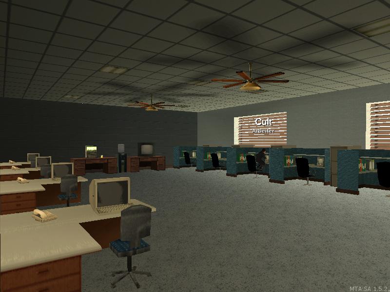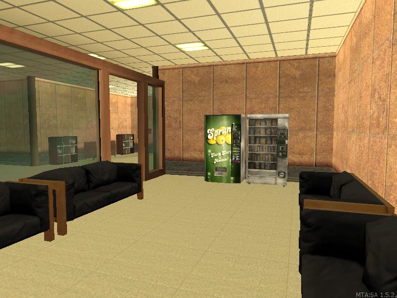 So sieht mein Arbeitsplatz im Gebäude aus. Reichlich Schreibtische und ein Getränkeautomat