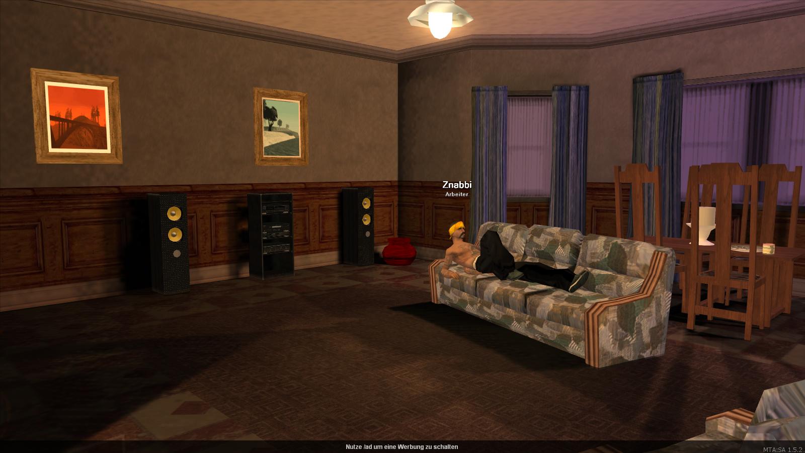 Hier chillt er bei dröhnender Musik...