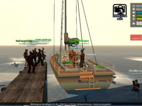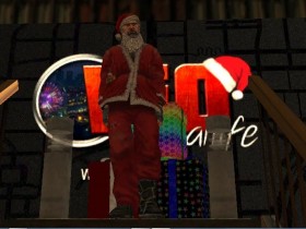 Das Schiff fuhr uns zum Nordpol. Huch, was ist das für ein blinkender Wald? Wir liefen hinein und sahen dann den Weihnachtsmann von Vio-Rl. Ihn gibt es ja wirklich und wir plauderten über die Welt da draußen. Als wir uns etwas unterhielten, schenkte uns dieser Mann, ein paar Geschenke, die wir zu anderen Bürgern bringen sollen.