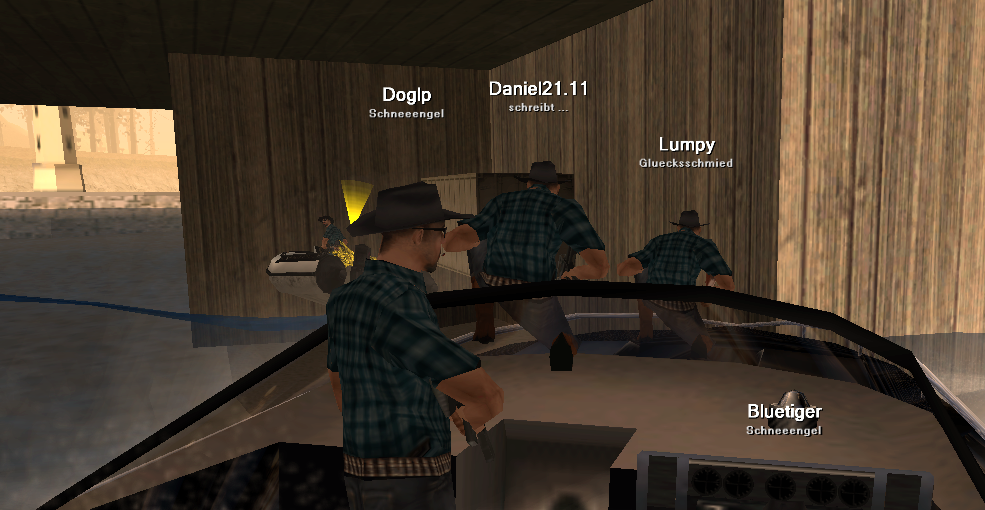 Meine nächste Station waren die Gangmissionen. Ich war bei mehreren Missionen dabei und habe einmal meine Kamera angeworfen. Wir fuhren mit dem Infi, dem Boot und den Mavericks zu den Missionen. Hierzu fragte ich Bluetiger und Lucifer: