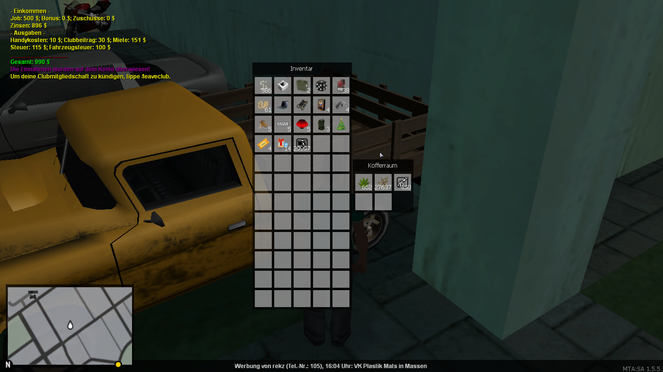 Ziemlich interessant was alles so in einem geheimen Fahrzeug ist...von 662g Drogen bis zu 27.637 Mats.