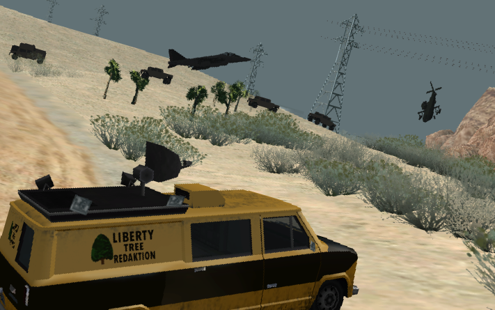 Machen wir weiter mit dem Konvoi, in dem man die verschiedenen Fraktionsfahrzeuge sehen kann. [Patriot - der Geländewagen | Hydra - der Jet | Hunter - der Helikopter]